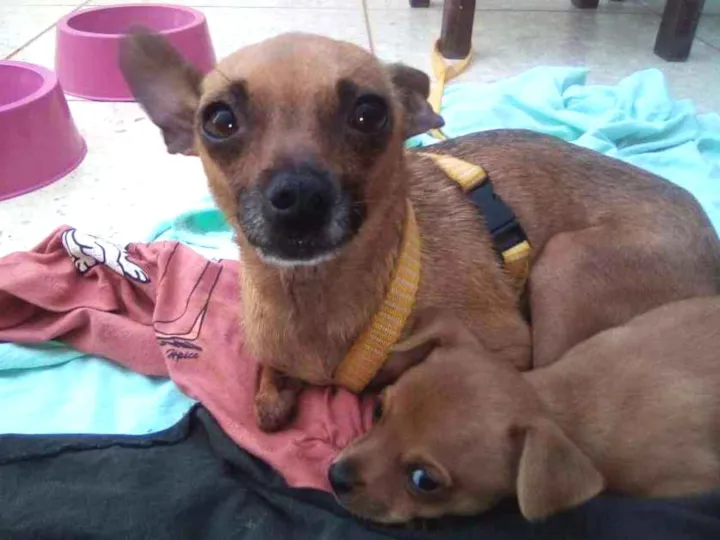 Estou doando uma cachorra com o filhotinho dela de um mês e pouco...