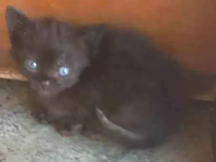 A mae do filhote é de rua, que sempre vem na minha area. Teve os filhotes aqui. Todo preto.