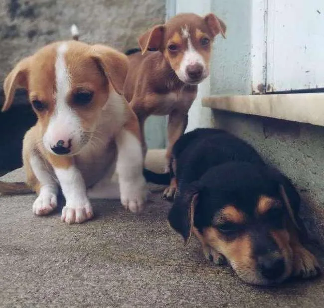 Há dois anos adotamos a Mel. Ela estava num lar completamente desestruturado e trouxemos ela pra cá. Foi uma adoção responsável, tinhamos uma certa estabilidade financeira. Pouco depois no portão aqui de casa apareceu o Deco, devia ter mais ou menos uns cinco meses, estava com fome e era outono. Decidimos ficar com ele também até encontrarmos seu dono, mas depois de tanta procura chegamos a conclusão que ele tinha sido abandonado e o adotamos. Infelizmente há quase um ano perdi meu emprego e a nossa estabilidade acabou. Mais ou menos nessa época também tivemos que nos mudar da onde morávamos por segurança dos cachorros. Logo depois aconteceu o inevitável, não castramos a Mel quando o dinheiro ainda dava e vieram oito pequenos. Cinco já foram adotados mas ainda estamos com três, tentamos de tudo, colocamos em sites, páginas... Meu desejo inicial era ficar com os cinco. Mas o melhor pra eles é que encontrem um lar onde possam ser bem cuidados, onde possam ter a vida que merecem. Até pouco tempo eu estava fazendo uns bicos e ainda dava pra manter a ração, mas infelizmente agora não tenho mais pra onde correr. A ração acabou faz dois dias e estamos alimentando os cinco com nossa própria comida que logo vai acabar também. Os cinco juntos comem 15kg de ração por semana. Já tentei postar no site de vocês mas da erro na hora de carregar a foto. Preciso muito de ajuda para conseguir um lar confortável para os pequenos. Por favor, agradeço se compartilharem as fotos deles.