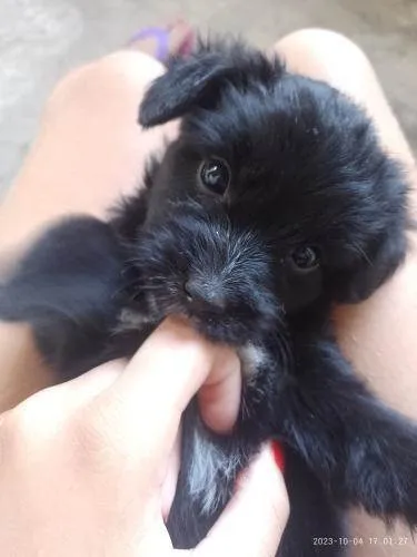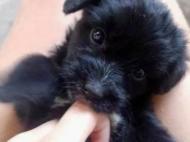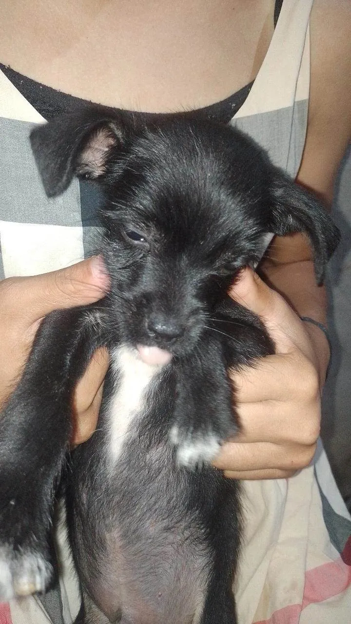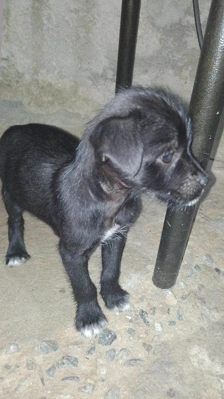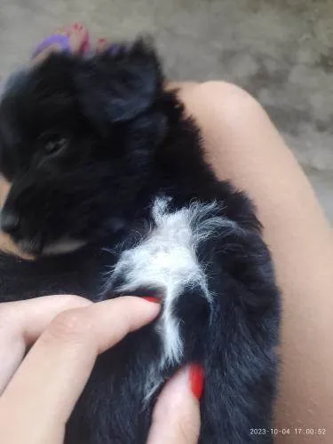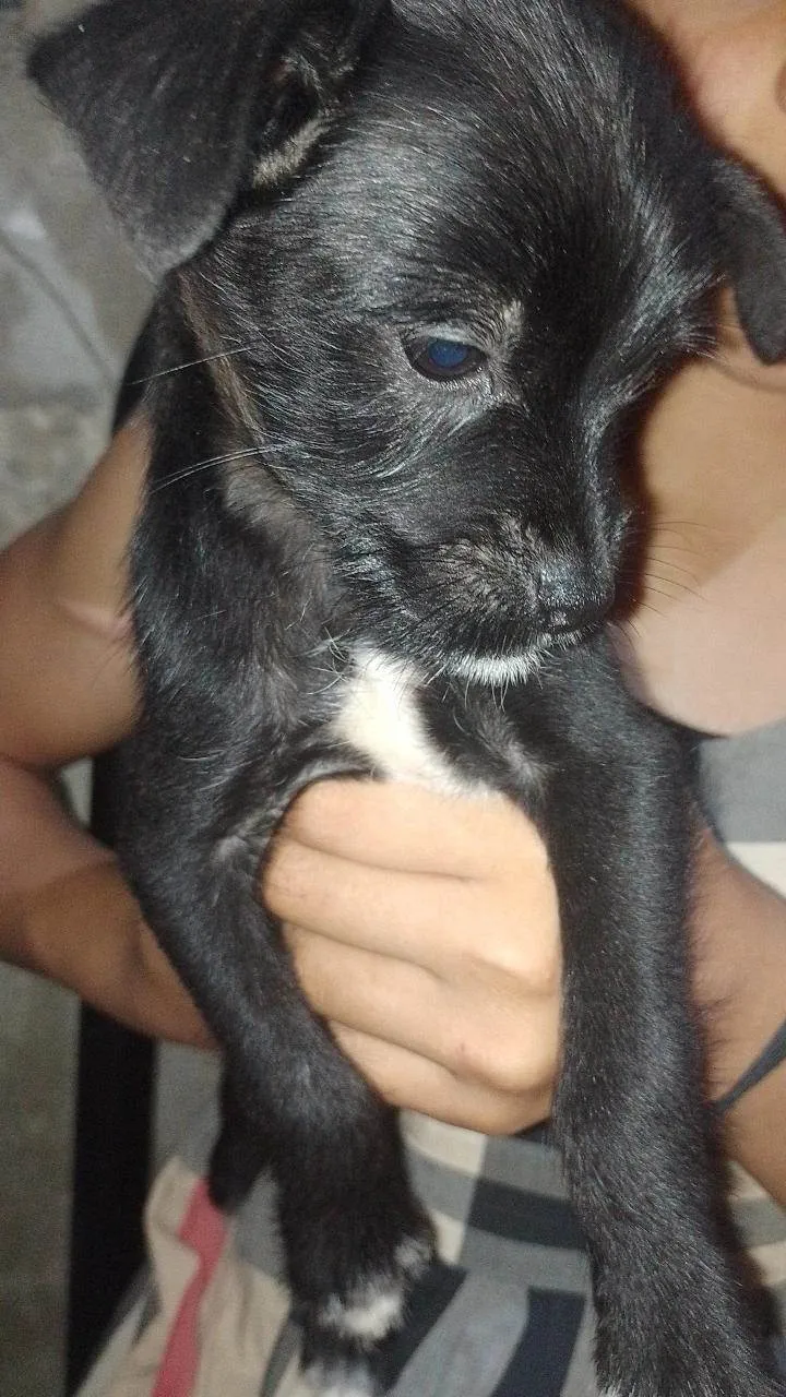 uma femêa , peludinha , 1 femêa com o pelo normal preto . Outros 5 macho com o pelo normal , preto com pequenas manchas branca . E um macho com o pelo liso e grande.