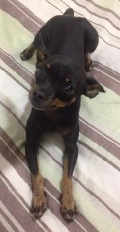 Nina é uma pinscher miniatura, preta, não usava coleira. foi vista pela última vez no bairro nações unidas, na porta de casa. Ela é arisca e latia pra todos na rua.