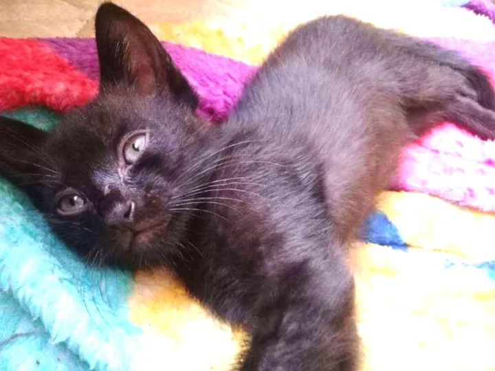 Minha gata teve 3 filhotinhos, dois pretinhos e um preto e branco, e agora estou à procura de um novo lar para eles.