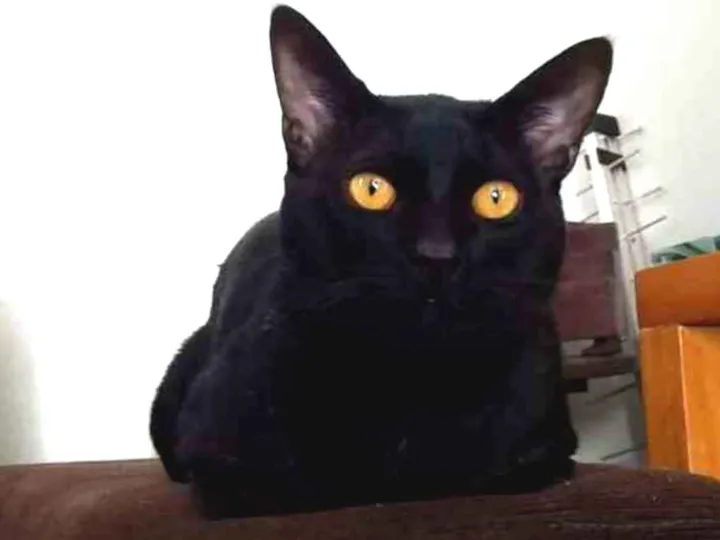Gato preto, olhos amarelos, super dócil e amigável, tem a pelagem do rumo dos olhos mais rala, pelo curto, tinha perdido as unhas das patas da frente na última fugida para a rua, atende ao chamar p...