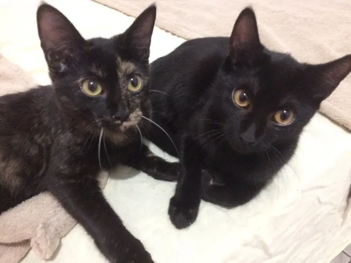 2 gatinhas filhotes, a mãe fugiu e ficou prenha, na época eu não tive como castrá - lá, não tenho condição de criar as três , a mãe consegui castrar mês passado.