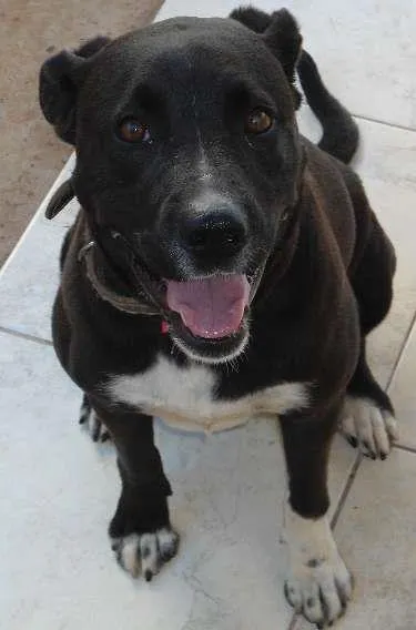Conheça a Bella, uma cadela dócil e inteligente, mistura de labrador, rotweiller e pit bull. Ideal para crianças, já vem com casinha e brinquedos. Adote!
