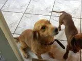 Tenho um cachorro de uns 4 anos. Ganhamos de uma vizinha. Ele não é de raça, mas parece um Golden (só que um pouco menor).
