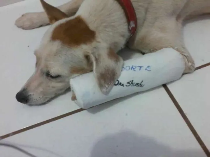 Cão urgente para adoção. Resgatado de maus tratos, pata quebrada e magro. Oferecemos ração e atendimento médico vitalício. Ajude o Coxinha a ter um lar.