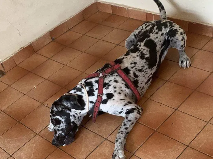 Macho dócil e brincalhão , precisa de um lugar com bastante espaço (motivo da doação)