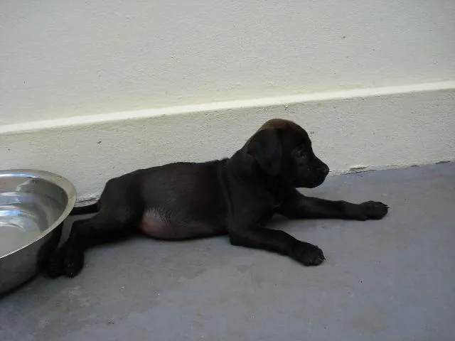 Adote a encantadora Preta III, uma cadela SRD fêmea, dócil e inteligente, perfeita para crianças, com menos de 2 meses. Campo Grande/MS.