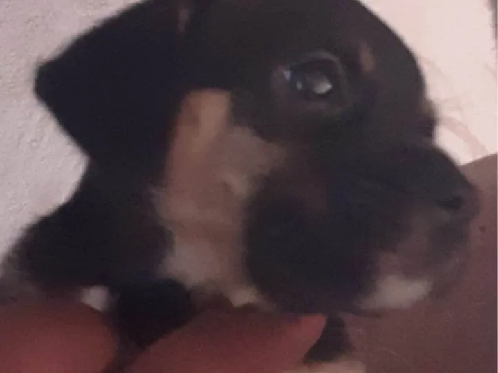 Adote Sem Nome, uma adorável cachorrinha SRD preta, dócil e vermifugada. Ela tem 3 meses e precisa de uma família com quintal em Campo Grande/MS.