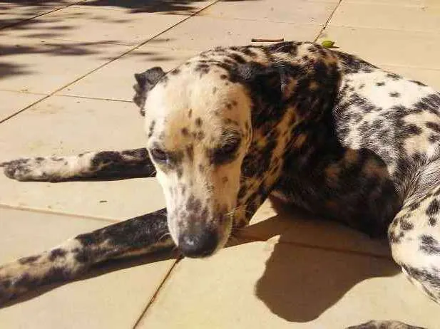 Trouxe para casa, estava muito debilitada e com para dianteira ferida. Busco o dono, se não encontrar não poderei ficar com ela pois tenho outros três cachorros e o maior o rotweiller estranhou ela é não tem aceitado muito bem. Portanto ela está precisando de um lar urgente.