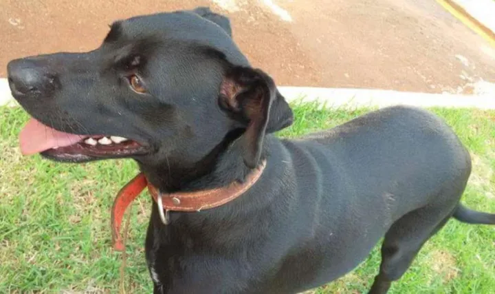 Fêmea de porte grande encontrada no bairro Rita Vieira. Toda preta esta com uma coleira vermelha e outra scalibor,parece ser novinha e super brincalhona. Qualquer noticia entrar em contato pelos cel 9997-5652 ou 9197-9779