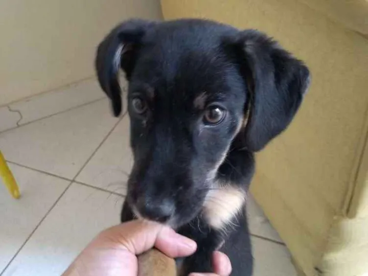 Cachorrinha/filhote (fêmea) encontrada perdida na rua Jupiá, próximo ao SEBRAE.