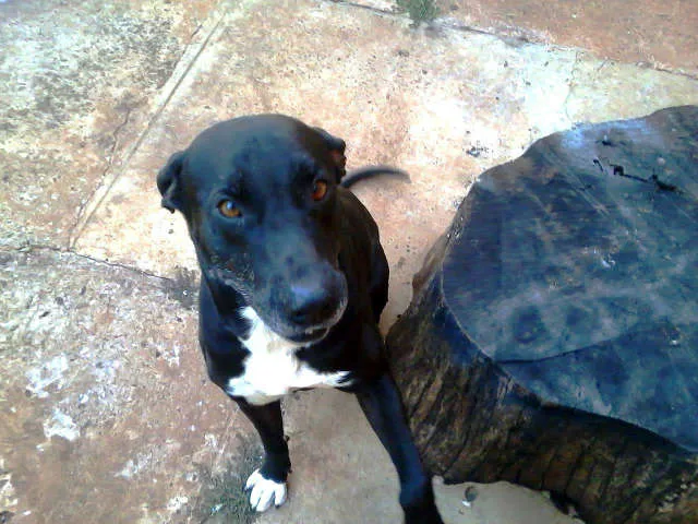 Ajude a encontrá-lo! Pitbull preto chamado Blade fugiu na Rua da Divisão, Bairro Parati. Família oferece gratificação para quem encontrá-lo.