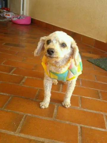 Sumiu em 12/09/2012. Tem 14 anos, mas é muito ativa e adora brincar. Estava de banho tomado, peludinha, com lacinho laranja. Tinha um machucadinho na coxa esquerda e estava passando remédio.
