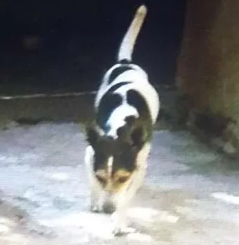 Ele tem uns riscos nas costas,tem um dente(presa)quebrada.Ele é manco da patinha traseira.