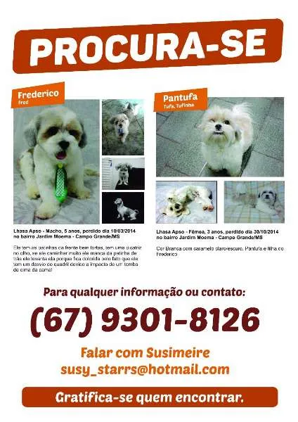 Frederico foi roubado do quintal da minha casa em 10/03/2014, e para minha tristeza Pantufa sumiu no dia 30/10/2014. Por favor me ajudem a divulgar! Frederico vai fazer 5 aninhos e a Pantufa vai fazer 3 aninhos, Frederico é pai da Pantufa. É uma dor tão grande. Moro no bairro jardim Moema, já andei os bairros vizinhos e nada de encontra-los. Por favor me ajudem, vcs que moram nas proximidades dos bairros ROUXINÓIS, ITAMARACÁ, JULIETA, PERDI ZÉS,UNIVERSITÁRIA...Tenho FÉ e ESPERANÇA que vou encontrar meus filhos :(.