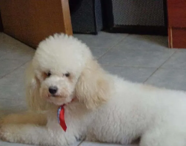 Cor branca com pequena mancha amarelada nas costas. Atende pelo nome de Max. Fugiu ao encontrar o portão aberto no dia 25 de julho de 2014 - Rua da Paz, 1583 Bairro Sta Fé.