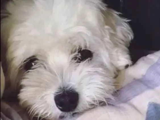 Cachorra muito dócil , está com pelo raspado , menos a cabeça .