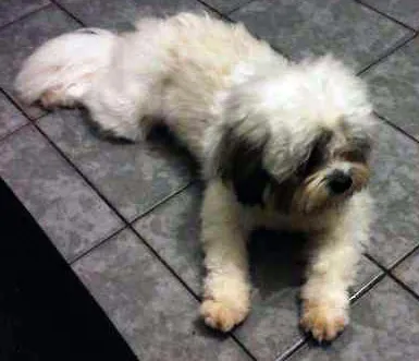 COR BRANCA E PRETO,PELOS DA ORELHAS TOSADOS,PINTAS PRETA NA BARRIGA