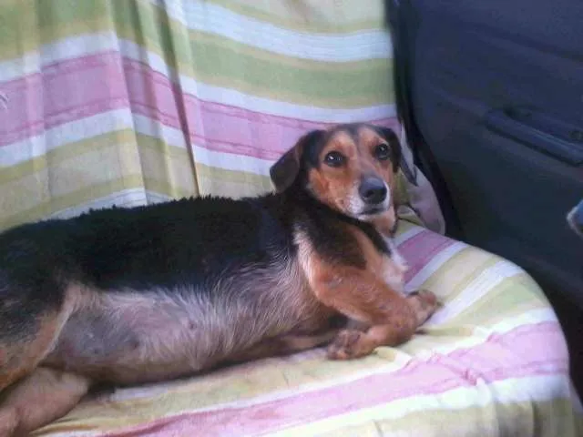 Gratifica-se quem encontrar, ela é pequena, baixinha sem o rabo, preta com o peito branco.