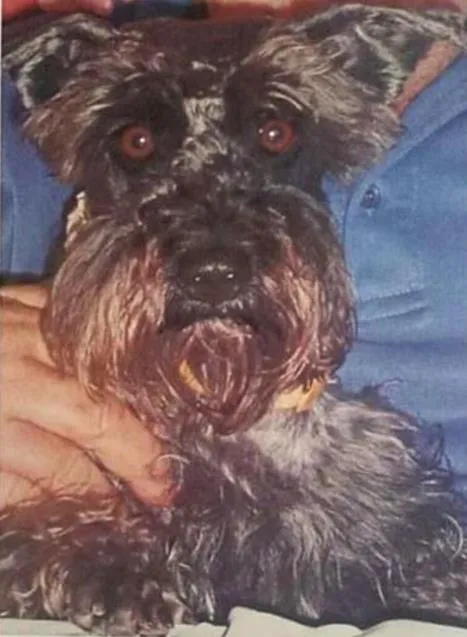Pelagem preto-fosco, barba marrom, de natureza assustada. Saiu pela primeira vez sozinho. Seu dono é um senhor idoso, doente, que está bastante abalado com seu desaparecimento.