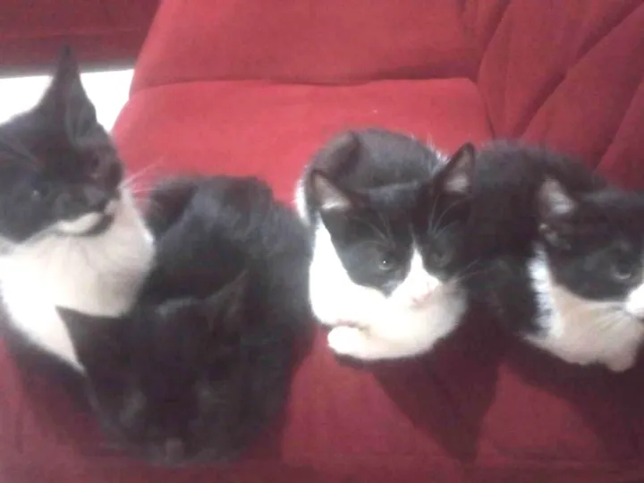 Preciso doar 04 gat@s - são 03 fêmeas e 01 macho. Já desmamaram, a mãe deles sumiu. Infelizmente não tenho condições de ficar com el@s, por favor, solicito a quem possa adotar. São lind@s, ativ@s, sádios, brincalhões... O macho é todo preto, as fêmeas são mescladas branco e pretas.
