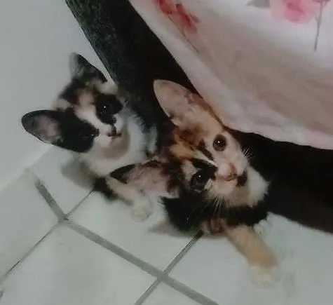 Hj pela manhã eu e meu esposo estávamos passeando com os dogs quando encontramos essas quatro criaturinhas lindas abandonados no meio do mato, trouxemos para casa porém não podemos ficar pois já temos outra gata e um casal de cachorros e a fêmea não se dá bem com outros animais. Então estou colocando eles a disposição para quem quiser dar uma segunda chance para eles , são três fêmeas e um macho.