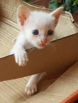 Essa gatinha apareceu aqui em casa e teve 6 filhotinhos. São todos lindos e puxaram os olhos azuis da mamãe. Estou procurando alguém para cuidar deles. Já estão tomando leite e começando a mordiscar ração.