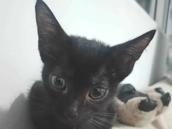 Encontramos na porta de casa, ela é super dócil amigável esperta e obediente usa caixinha de areia e já come ração estou tentando doar pois não tenho condições, ela precisa de um Lar