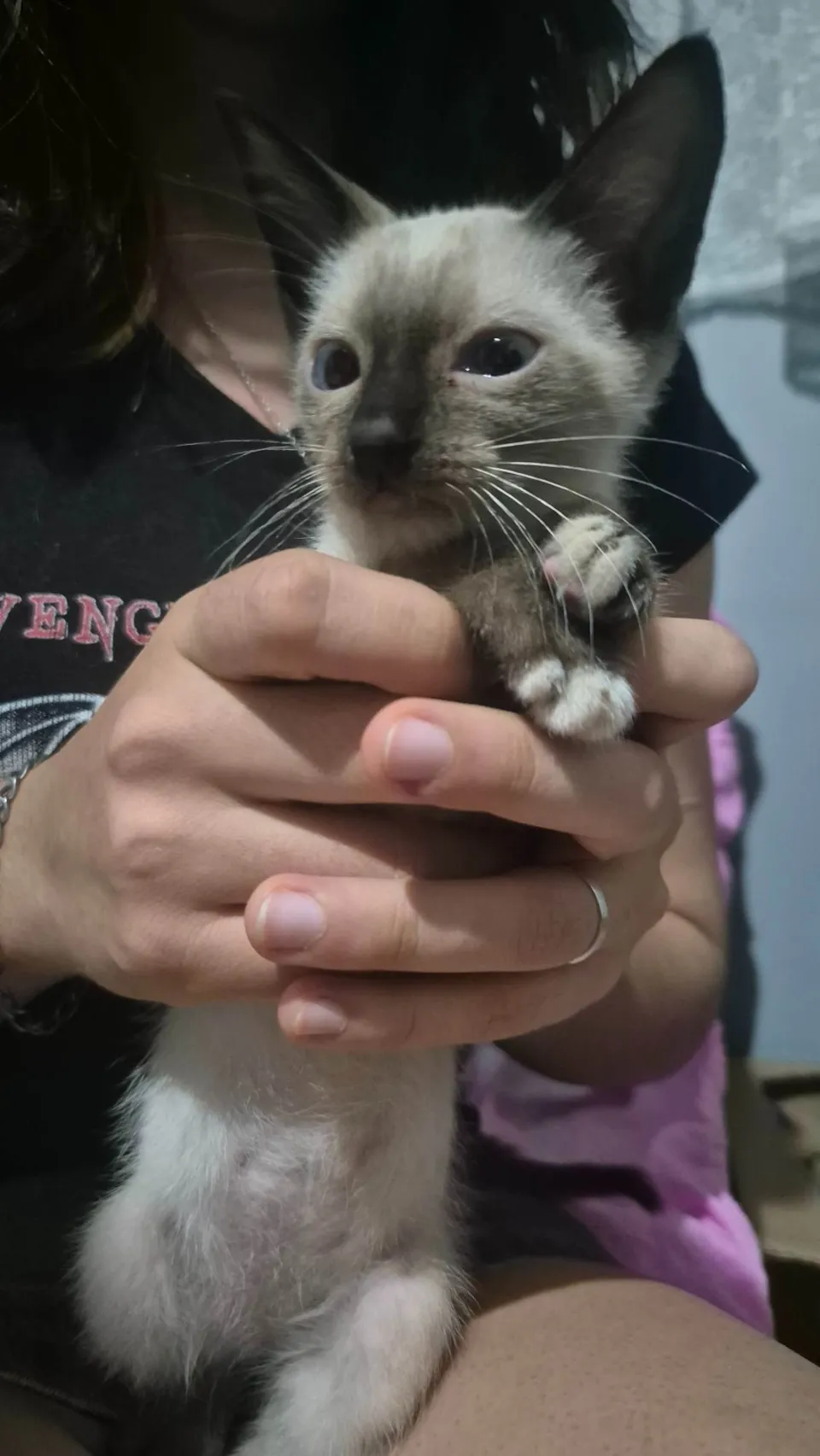 Gatinha é da raça siamês. Essa princesinha se dá bem com outros gatos, crianças, idosos e até mesmo com desconhecidos.