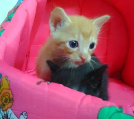 3 gatinhos, sendo 1 macho amarelo, 1 femea tartaruga (tricolor) e 1 femea preta e branca. Doceis e afetuosos. Desverminados e ja isam a caixinha de areia.