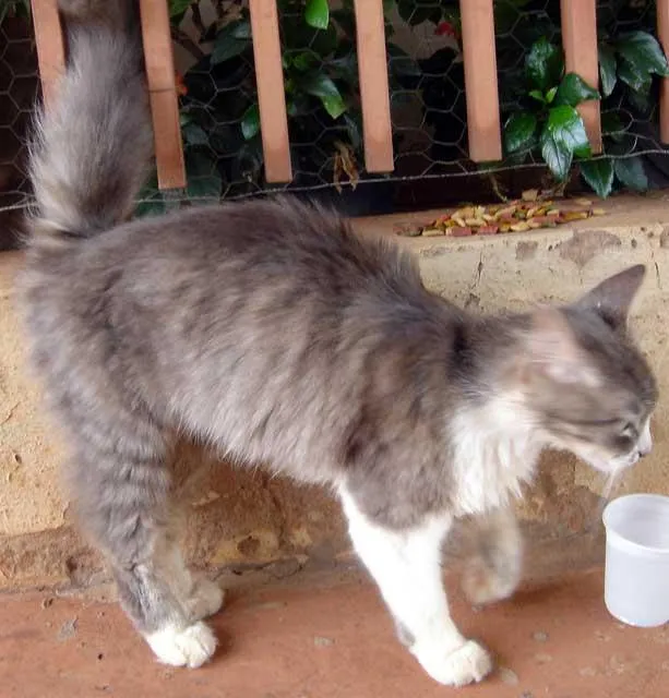 Temos que char um lar para esta linda gatinha cinza e branco que está na rua, em frente a casa de minha namorada, que está alimentando ela, mas não pode ficar com a mesma, então se possível peço urgência para achar um lar para ela.