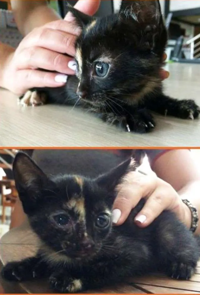 Encontrei a gatinha na rua, machucada. Levei ao veterinário, foi medicada e está saudável. Ela está com o olhinho machucado pois sofreu maus tratos, ela apanhou. Comprei toda a medicação que ela tem que usar (antibiótico, vitamina) e a ração. Mas não posso ficar com ela, e ela precisa de um lar. é uma princesinha linda que só precisa de um bom coração pra cuidar dela.