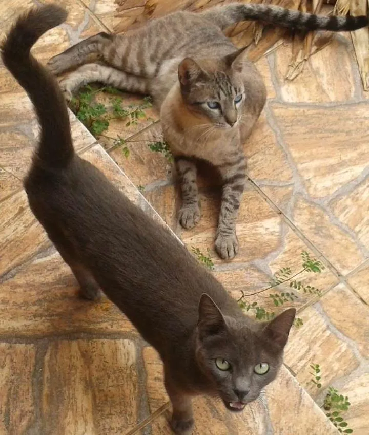 Os gatos são ambos castrados, possuem o hábito de ficar em casa e não costumam ir para a rua.