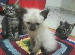 Adoção de gatinhos em Campo Grande/MS. Conheça 3 rajadinhos, 1 preto e 1 branco, todos com menos de 2 meses. Dê um lar cheio de amor!