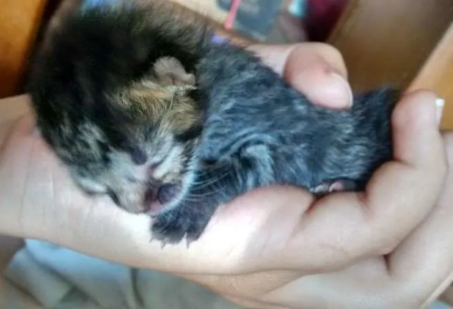 Gente, me ajudem! Encontrei esse gatinho na rua e ele tem apenas alguns dias de vida. Eu não tenho condições de cuidar, pois minha mãe trabalha e eu estudo em período integral, ele vai acabar morrendo se continuar comigo! Preciso de um dono urgente!! Por favor, ajudem!