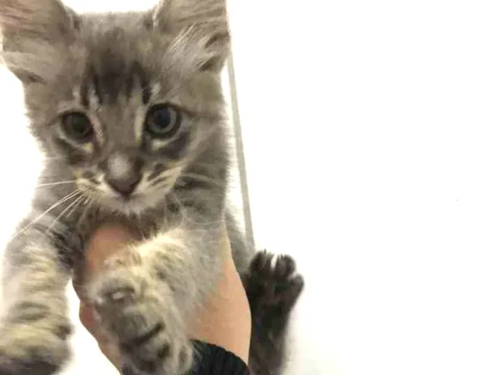 Filhote com aproximadamente 1 mês de vida, brincalhão, dócil, encontrado na avenida nove na vila nova Campo Grande, a pelagem é mista e tem alguns pelos brancos na orelha.