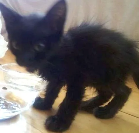 Olá gente! Minha irmã encontrou esse gato de ébano, de olhos verdes ") Aquele gatinho preto que todos desejam, já que essa história que gato preto dá azar é balela... meu bem... azar não! Traz só alegrias!