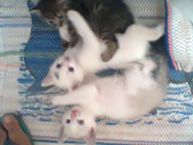 coloco a disposição três filhotes fêmeas com menos de dois meses,uma é normal e as outras duas nasceram com uma deficiência nas duas patas de trás e andam rastejando.Elas tem que fazer fisioterapia mais eu não tenho condições de pagar e eu liguei no centro de zoonoses e eles falaram que fazem eutanásia em animais assim,até a veterinária que viu as patinhas delas me falou que se eu levar no CCz eles vão fazer eutanásia porem eu não quero isso pois as gatinhas são normais,brincam juntas fazem bagunça não precisa matar só porque tem deficiência nas patas.Se alguém tiver interesse pois tenho que levar os filhotes moro em kit net e nem posso ter animais aqui essas três gatinhas são a primeira cria da minha gata.