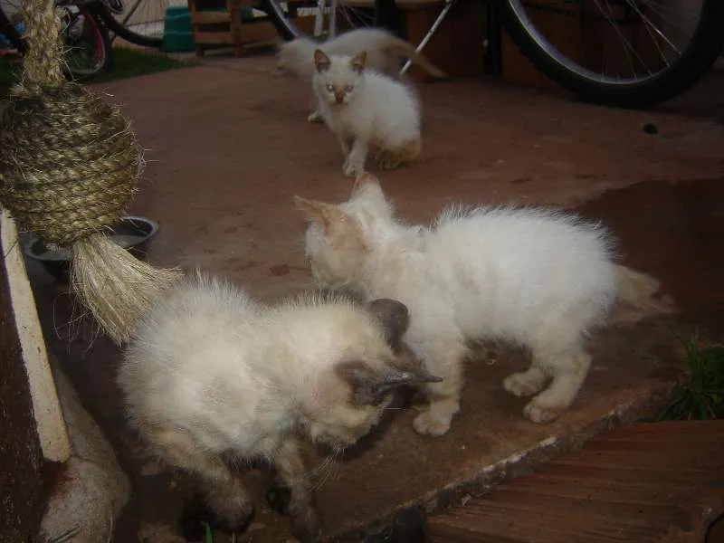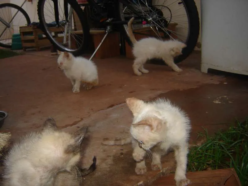 Esses lindos filhotes precisam de um DOCE LAR, foram resgatados de uma Avenida, pois já estavam seguindo sua mãe pro meio da Avenida (mãe morada de rua na qual já cuido e sua filha mais velha também), já dei banho, já tomaram remédio de verme, estão melhorando de suas sarnas, pois pegaram na rua. Não tenho condições de ficar, pois já adotei 2 gatas e um cachorra mais a menina e sua filha mais filha, eles dão bem com todos os meus animais, porem não tenho espaço, nem condições financeiras. Quem gostaria de Adotar uma gatinha LINDA, FOFINHA, BRINCALHONA e ter ALEGRIA em casa adote, tem 2 fêmeas 1 macho outro já foi adotado.