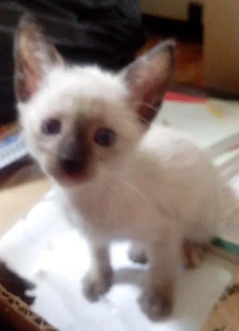São 4 fêmeas e um macho, mistura de siamês com vira-lata. As fêmeas são branquinhas, lembram a mãe siamesa, o macho é todo pretinho. São muito brincalhões!