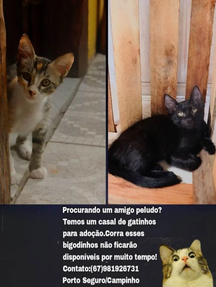 Adoção casal de gatinhos, ambos tem 3 meses são carinhosos e brincalhões