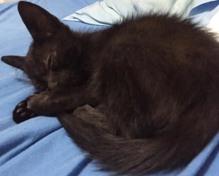 Encontramos na rua. Ela precisa de um dono. Nao podemos cuidar... Está muito magrinha e precisa passar remédio nos olhos. Contudo é um amor, passou uma noite conosco, e não miou... Precisa(mos) de ajuda.