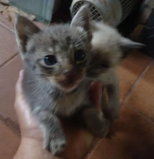 numa casa meio abandonada, no mato. era cinco gatinhos, levei todos para a casa e comecei a tratá-los, doei dois e fiquei com três. aí veio o problema, tenho crianças pequenas em casa, e eles pegam muito os gatinhos, é difícil controlá-los, e uma criança amanheceu com os olhos avermelhados e lacrimejandos, aí não tive escolhas, já culparam os gatos, pois são netos, aí começou os comentários,. por fim não tenho escolhas, precisos doá-los, não vou soltar na rua, essa não é a minha missão. vou arrumar um dono para eles com amor. abraços e obrigado.