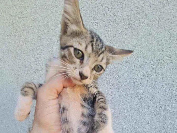 Gata rajada, pequena, já castrada, com dois filhotes, sendo uma fêmea e um macho. Os filhotes serão doados já vermifugados e vacinados. A fêmea ja terá garantida a castração por minha conta.