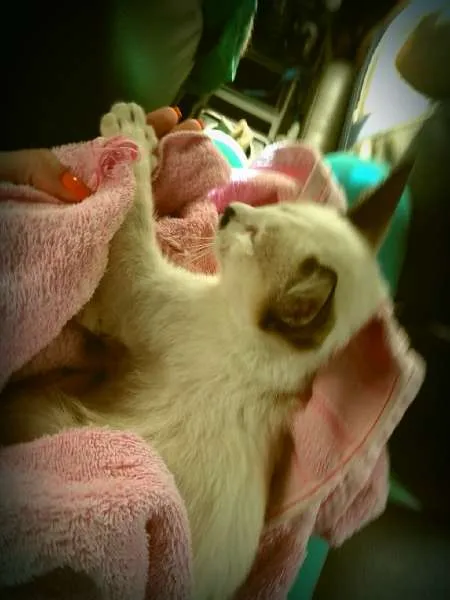 Gatinho com mais ou menos 3 meses de idade, que foi resgatado na rua sendo espancado por garotos. Ele está com um machucado na parte traseira, porém , já foi encaminhado ao veterinário e já esta recebendo os devidos cuidados.