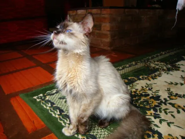 Foi encontrada em uma caixa com dois filhotes, não sabemos a idade dela e nem a quantos dias os filhotes nasceram, mas só um sobreviveu e está ainda com os olhos fechados, é todo branco. Iremos entregar a gata castrada somente depois que deixar de amamentar, o filhote será entregue quando deixar de mamar, ainda não sabemos o sexo dele.