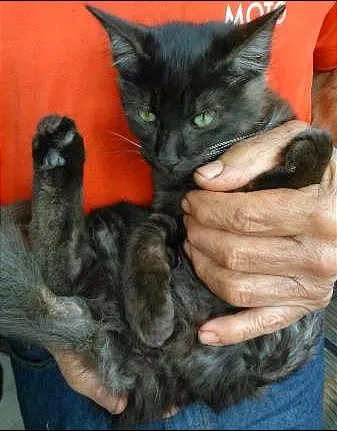 Encontrei um gato, macho, cor mesclada (pelagem preta, quando passa a mão fica cinza embaixo), aproximadamente seis meses, nas imediações do Bairro Bandeirantes. A notícia que tenho é que ele estava no motor de um carro do cliente do meu vizinho.