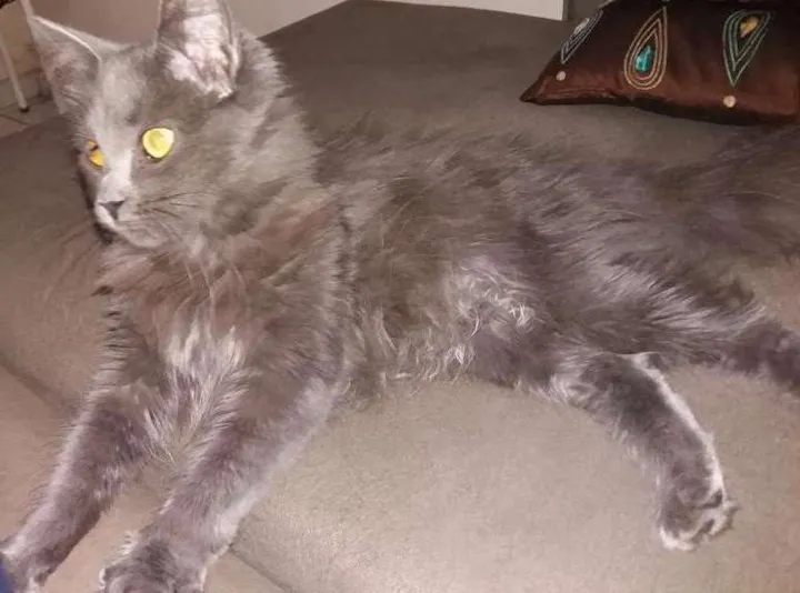 PROCURA-SE O DONO Gatinha achada no bairro Tiradentes, próximo ao Asilo São João Bosco. Deve ter dono, pois está muito bem tratada. Parece que não enxerga de um dos olhos. Pelagem cinza "azul" e angorá. Muito mansa e dócil.